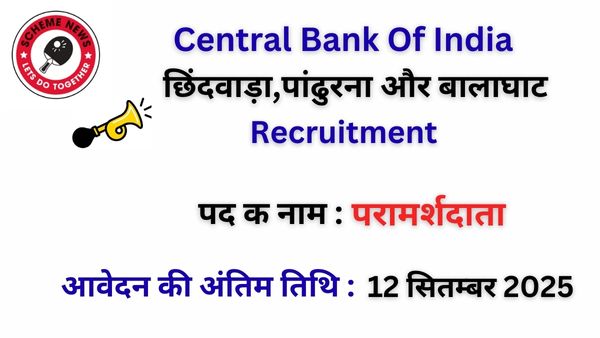 CBI Recruitment : सेंट्रल बैंक ऑफ़ इंडिया ने मध्यप्रेश के छिंदवाड़ा,पांढुरना और बालाघाट के लिए परामर्शदाता पद के लिए ऑफलाइन ...